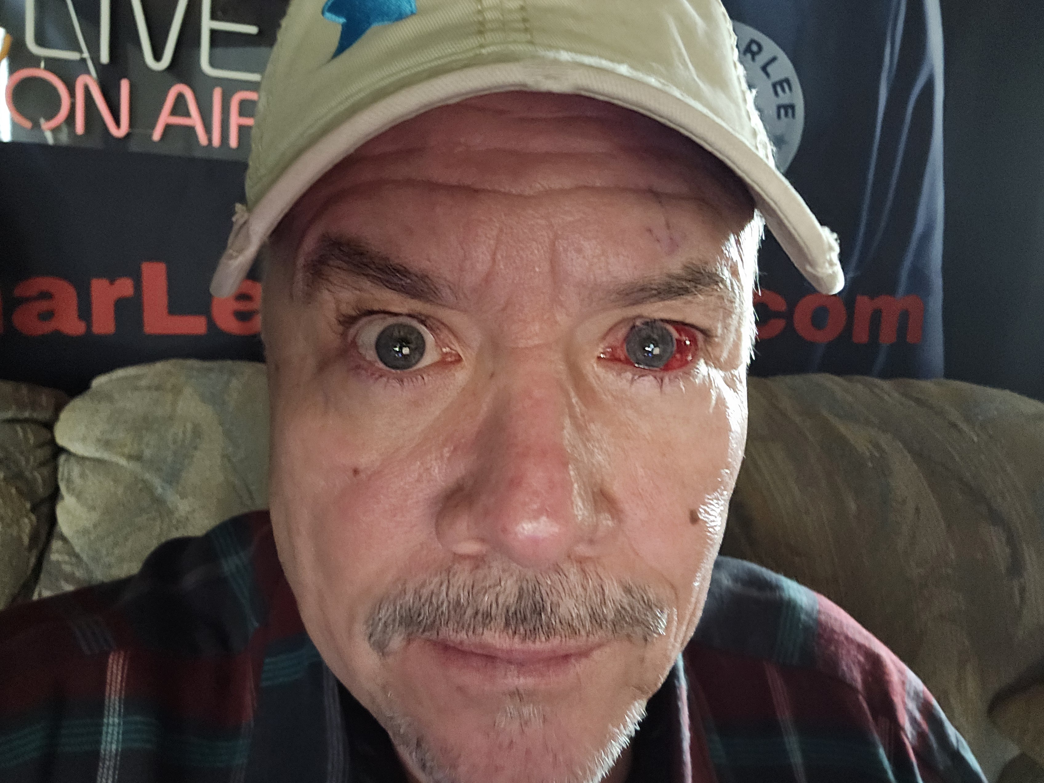 It's been twenty four hours since my latest surgery to restore the vision in my left eye. They promise it'll look a lot better than it does right now in another week. Frankly, my eye hasn't looked this bad since I got sucker-punched in college!😆